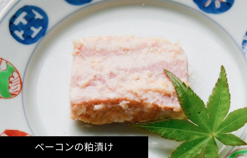 ごぼうの味噌漬け、ベーコンの粕漬け、竹の子辛子漬けはおつまみに最適です。